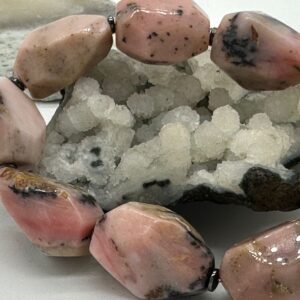 опал розовый, размер 10х9,5х7 мм, нить 19 см.